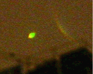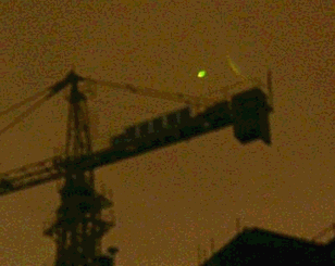 2013年6月6日凌晨,武漢市區(qū)電閃雷鳴?!段錆h晨報(bào)》攝影記者石一在機(jī)場(chǎng)高速公路與馬池路交會(huì)處附近的一個(gè)小區(qū)拍攝雷電時(shí),無(wú)意中拍到幾個(gè)綠黃色神秘光團(tuán)(圖2、3)。[2]