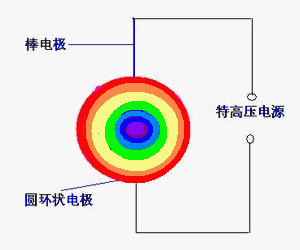 “棒電極”在球心O對(duì)“圓環(huán)狀電極”“超短時(shí)間內(nèi)的高能”(超高壓)充電、放電,可以產(chǎn)生“七彩圓盤(pán)狀閃電”,簡(jiǎn)稱(chēng)為“七彩閃電”(圖8、9)。[7]